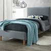 Ліжко виконане у сучасному стилі з м’якою тканинною оббивкою та стриманими лініями. Воно виглядає акуратно, не перевантажує інтер’єр і добре підходить для дитячих, підліткових або гостьових кімнат.