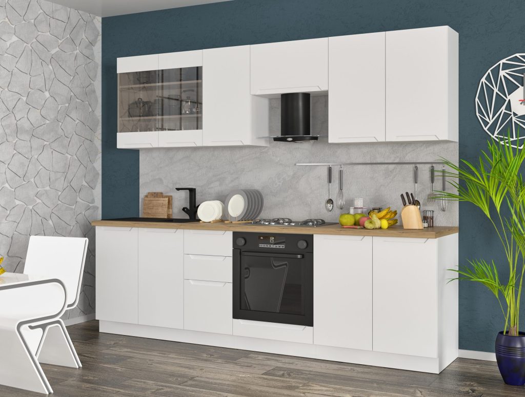 Оберіть необхідні модулі щоб дізнатись ціну. Зверніть увагу що ціна за стільницю та цоколь вказана за 1 м.п тому потрібно добавляти таку кількість який метраж потрібно.