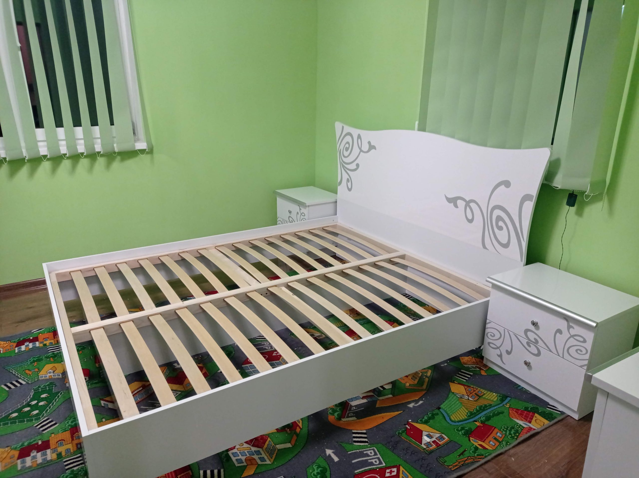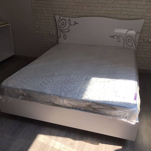 Практичне двоспальне ліжко з ламелами. Виробництво фабрики МіроМарк. Малюнок нанесено за допомогою новітньої технології — шовкографія. Захищене спеціальним УФ лакофарбовим покриттям.