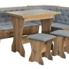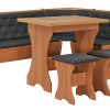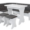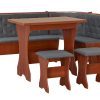 До комплекту входить кухонний куточок із нішами для зберігання, розкладний стіл і два табурети з м’якою оббивкою.