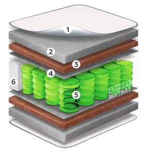 Тканина стрейч преміум-класу з бавовною. Завдяки збільшеному вмісту натуральних волокон бавовни (39%) матеріал чудово зберігає свою первісну форму, м’який і приємний на дотик, не електризується. Тканина не стимулює алергічні реакції. Чохол матраца з Organic cotton міцний, зносостійкий, наділений високим рівнем гігроскопічності та повітропроникності. 2. Інноваційна піна Carbon FoamЦе високоеластичний матеріал, який має пористу структуру, за рахунок чого активно дихає і відводить вологу. Піна Carbon Foam покращує ортопедичну підтримку хребта. Є екологічно чистим матеріалом, оскільки не виділяє жодних шкідливих речовин. Нейтралізує неприємні запахи та надає оздоровчий вплив на людину. Має бактерицидні, каталітичні та сорбційні властивості. 3. Кокосова койраЄ одним із найкращих природних настилів для матраца. Цей матеріал виробляється шляхом скріплення волокон кокосового горіха натуральним латексним складом. Завдяки своїй волокнистій структурі має відмінну природну вентильованість і прекрасний теплообмін. Кокосова койра абсолютно безпечна для здоров’я, екологічно чиста та гіпоалергенна. Головне завдання кокосової койри у складі матраца – підвищення ортопедичного ефекту шляхом створення додаткової поверхневої жорсткості, а також продовження терміну служби матраца за рахунок кращого розподілу тиску між сусідніми шарами інших настилів. 4. Термоволокно Eco Felt