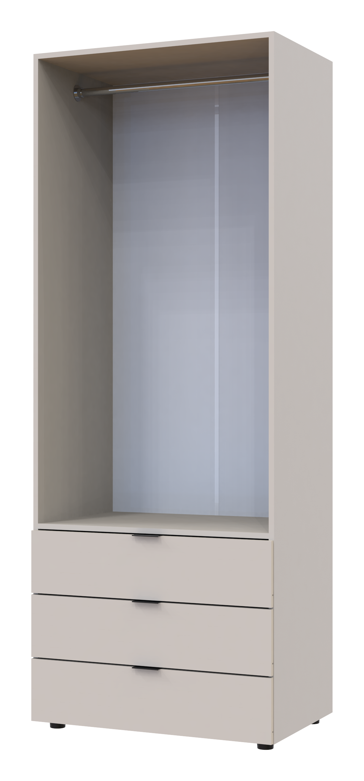 У шафі три висувні шухляди і одне основне відділення зі штангою для одягу.