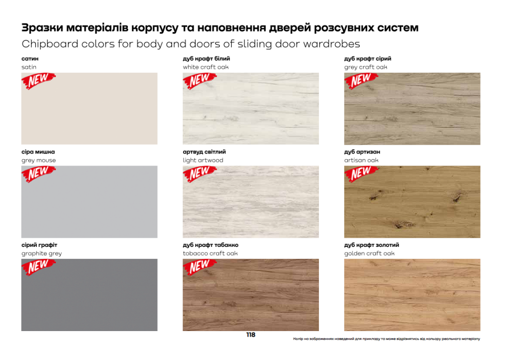 Стандартні кольори плити яку пропонує виробник шаф-купе Гарант. Ці кольори та декори входять в стандартну програму (базова ціна). Інколи деяких-декорів може не бути у виробництві. Тому краще перед замовленням уточнюйте наявність у наших менеджерів.