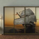 Фасади виконані з нанесенням фотодруку із морським сюжетом — фрегат у відкритому морі. Таке зображення додає інтер’єру глибини та динаміки, особливо доречно виглядає у світлих кімнатах або тематичних інтер’єрах.