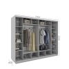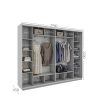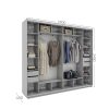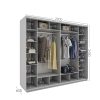 Корпус виготовлений з ламінованої ДСП, розрахований на щоденне навантаження. Чотири розсувні двері забезпечують зручний доступ до всіх внутрішніх секцій без потреби у додатковому просторі для відкривання.