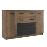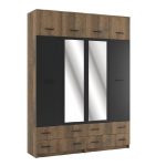 Всі деталі та фасади цього спального набору виготовлені з ЛДСП в сучасних декорах — Дуб фрегат + антрацит. Двері та шухляди працюють на сучасній добротній фурнітурі. Плита захищена вологостійкою крайкою ПВХ товщиною 0.5 мм. Це не тільки придає виробам акуратнішого вигляду, але й добре захищає від вологи та інших негативних факторів.