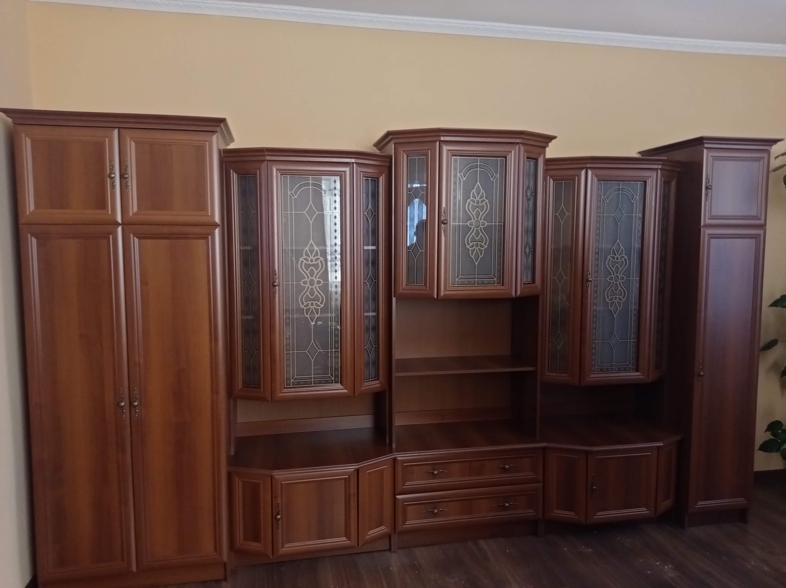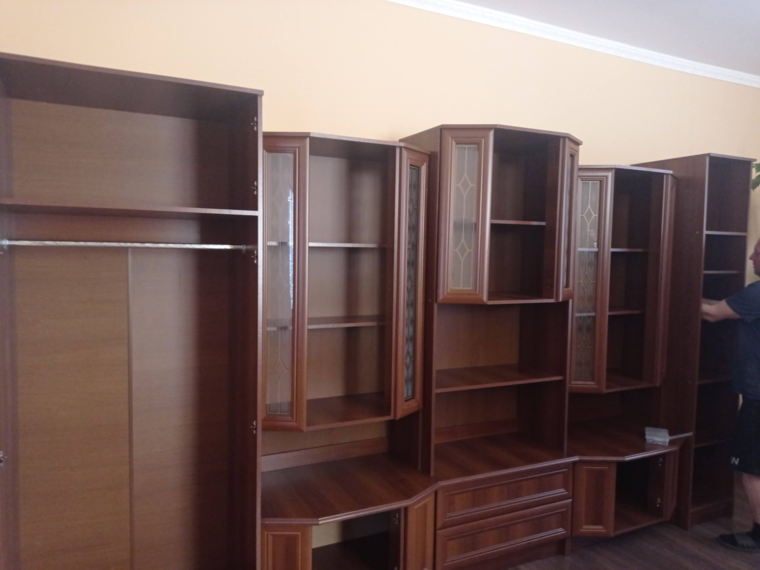Обирала собі стінку у вітально подивилась різні варіанти і вирішила обрати цей. На перший погляд дуже вдале поєднання шаф і поличок, дизайн чудово продуманий і ці скляні дверцята виглядали класно. Після замовлення трохи переймалась щоб те що бачила на картинці спів пало з тим що привезуть, але мої побоювання виявились марними. Коли я побачила після збирання у себе вдома то була вражена ще більше, якість чудова.