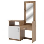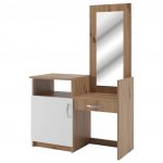 Дивлячись на цей столик можна зрозуміти що тут не економили матеріал, а просто прибрали все зайве. Тут є відкрита поличка для зберігання косметики чи іншого приладдя, яке завжди потрібне під рукою. Невеличка шухлядка дозволяє заховати інші речі, що рідше використовуються. Одне з відділень закривається дверцятами. Воно є найбільшим у цьому меблевому виробі. Розділене поличкою воно дозволяє зберігати навіть одяг, чи інші габаритні речі.